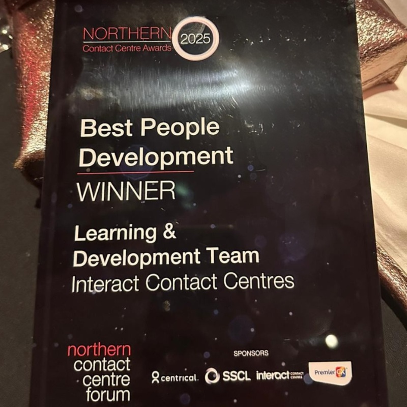 Interact’s brilliant Learning & Development team took home Best People Development at the Northern Contact Centre Awards 2025.